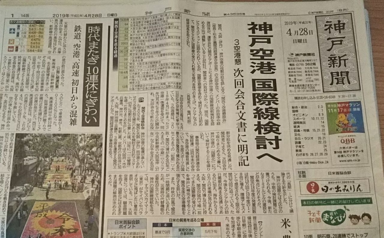 4月26日神戸新聞の第一面見出し語。JR福知山線列車事故から14年経ち