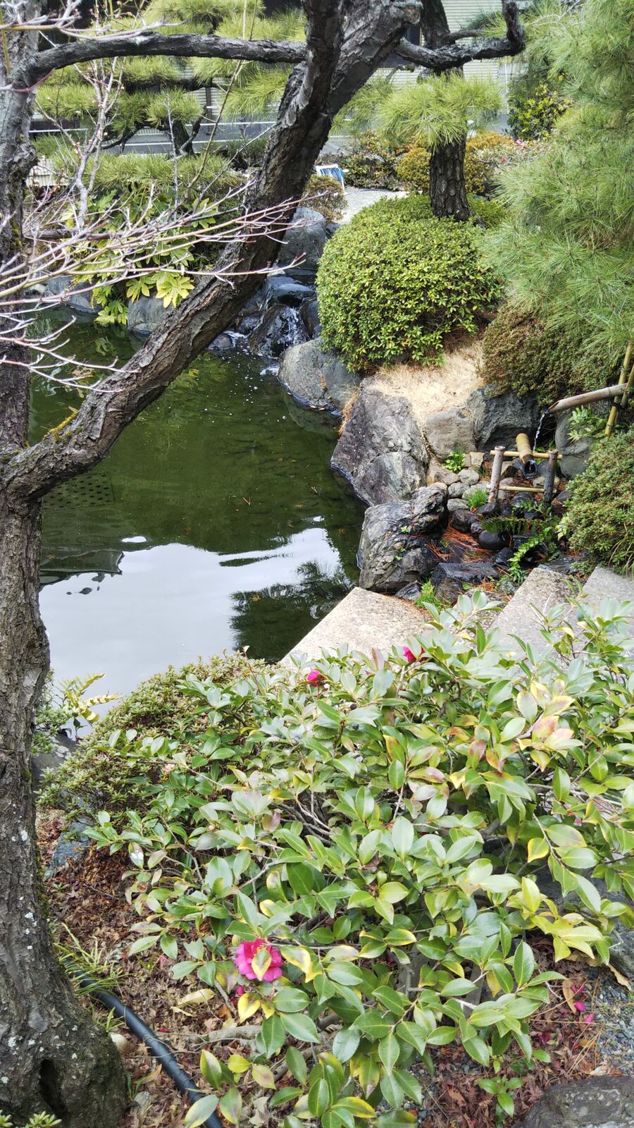 【寒椿落花大谷崎庭園】