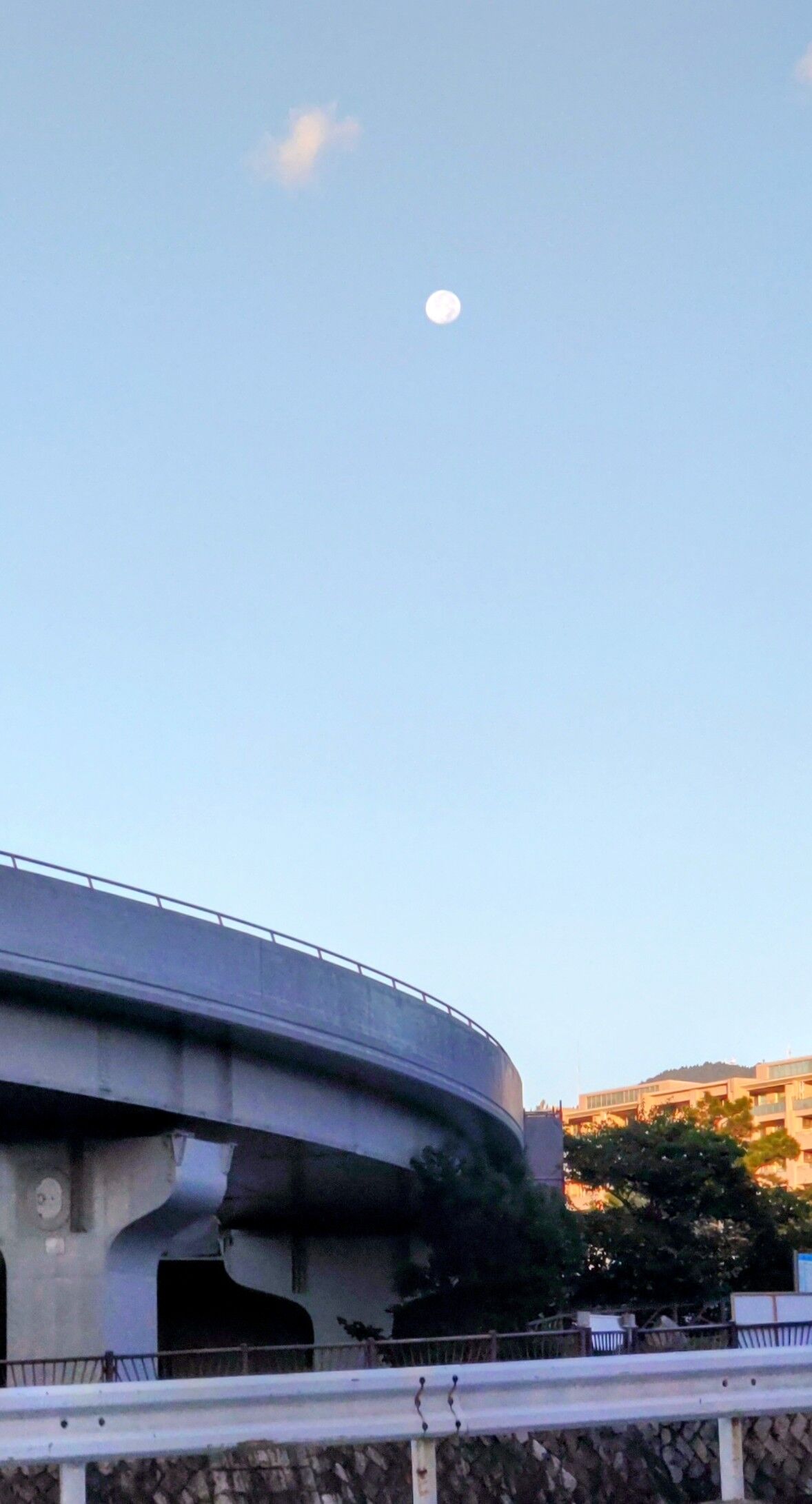 (立待月)残って有明の月⋯まだ丸い。