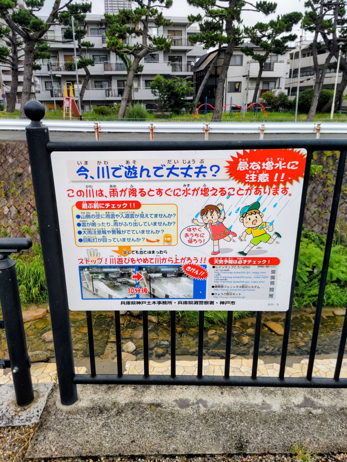 生田川が流れ、JR新神戸駅の南側では川べり