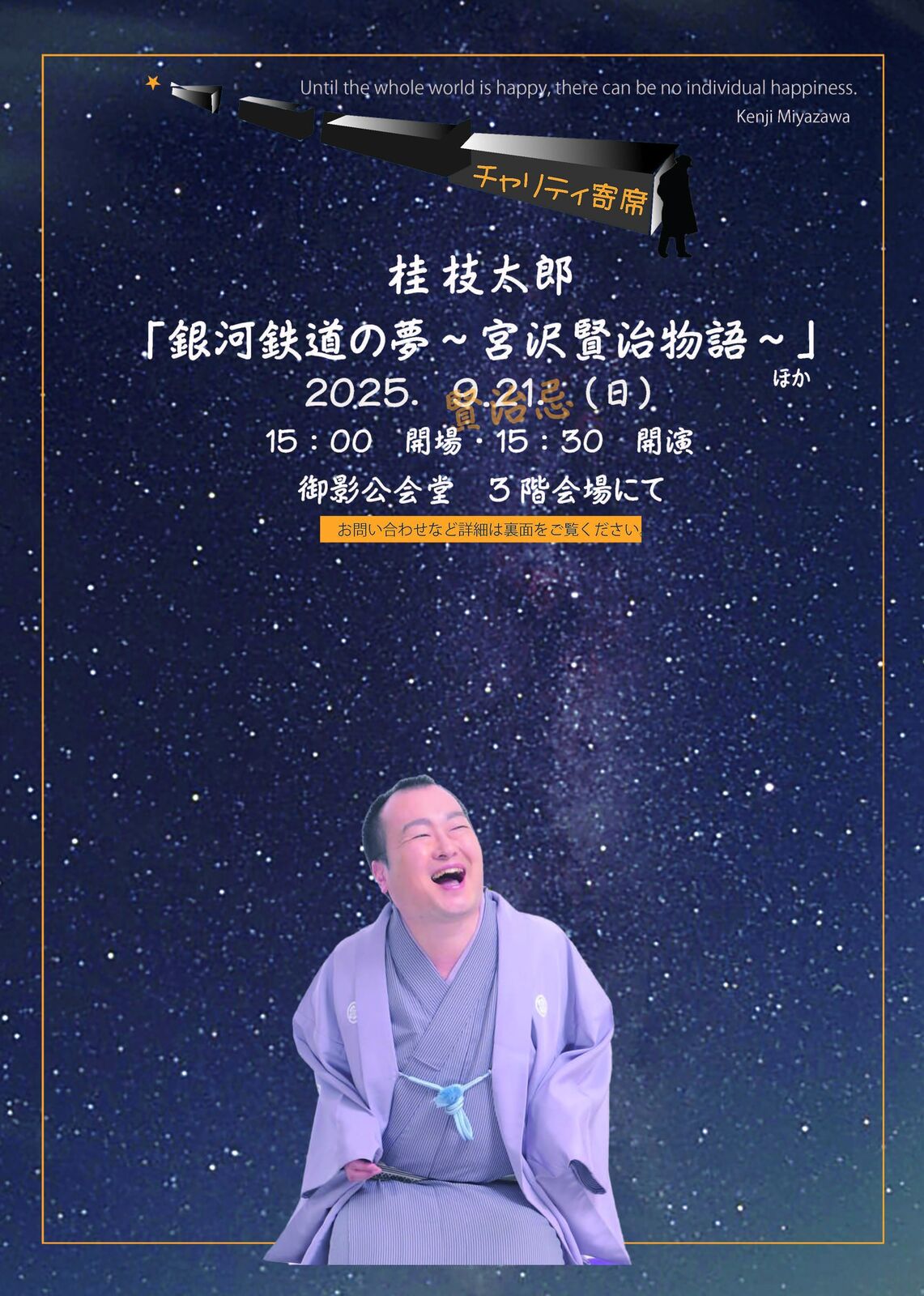 【桂枝太郎チャリティ寄席「銀河鉄道の夢〜宮沢賢治物語」ほか】